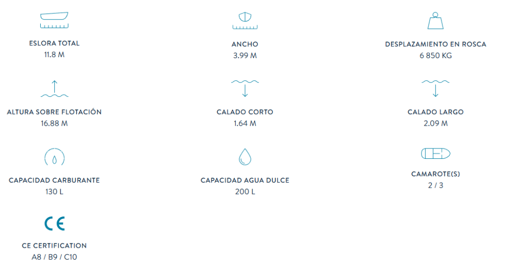 Nos gusta disponer, en una unidad de esta importancia, de 2 puestos de timón, un arco de vela mayor, así como una extensa plataforma de baño.